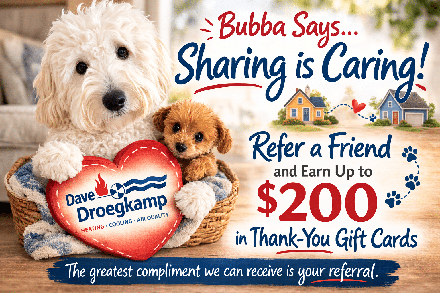 The greatest compliment we can receive is a referral from a happy customer. When you recommend Dave Droegkamp Heating, Cooling & Air Quality to your friends, family, or neighbors, it means you trust us with their comfort—and that means everything to us.